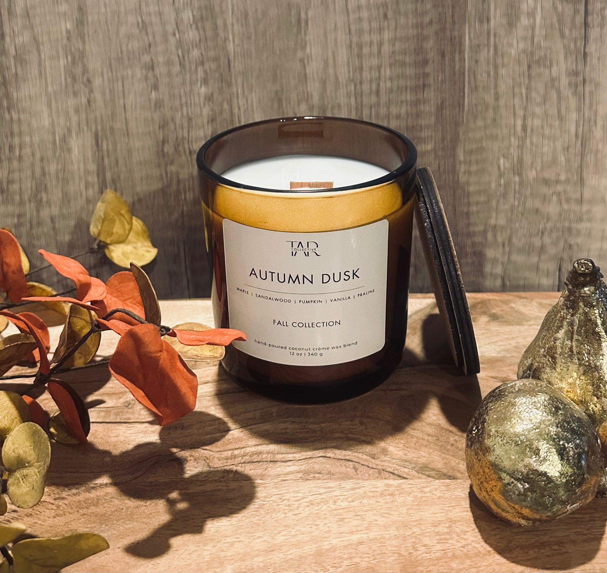 A soft fusion of amber and musk meets pumpkin and chai. A luxurious, inviting aroma perfect for crisp fall moments.